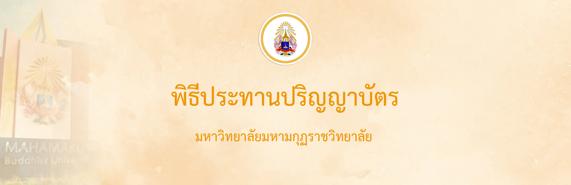 หน้าแรก รายชื่อบัณฑิต ดูข้อมูล ยืนยันเข้าร่วมพิธีฯ ดูข้อมูล กำหนดการ ดูข้อมูล การแต่งกาย ดูข้อมูล วีดิทัศน์สาธิต ดูข้อมูล แผนผังจุดบริการ แผนที่การเดินทาง ที่พัก ข่าวประชาสัมพันธ์ กำหนดรายงานตัวเพื่อเข้ารับประทานปริญญาบัตร ประจำปี ๒๕๖๗ (ฉบับที่ ๒) ผู้สำเร็จการศึกษาสามารถยืนยันการเข้ารับประทานปริญญาบัตรได้ กำหนดรายงานตัวเพื่อเข้ารับประทานปริญญาบัตร ประจำปี ๒๕๖๗ รายชื่อผู้สำเร็จการศึกษาผ่านการอนุมัติปริญญาบัตร ประจำปี ๒๕๖๗ สิ่งที่ห้ามนำเข้าในพิธี รวมภาพผู้เข้ารับประทานปริญญาบัตรดุษฎีบัณฑิตกิตติมศักดิ์ มหาวิทยาลัยมหามกุฏราชวิทยาลัย ดูภาพทั้งหมด